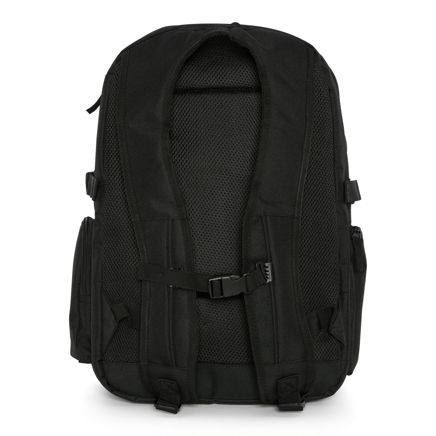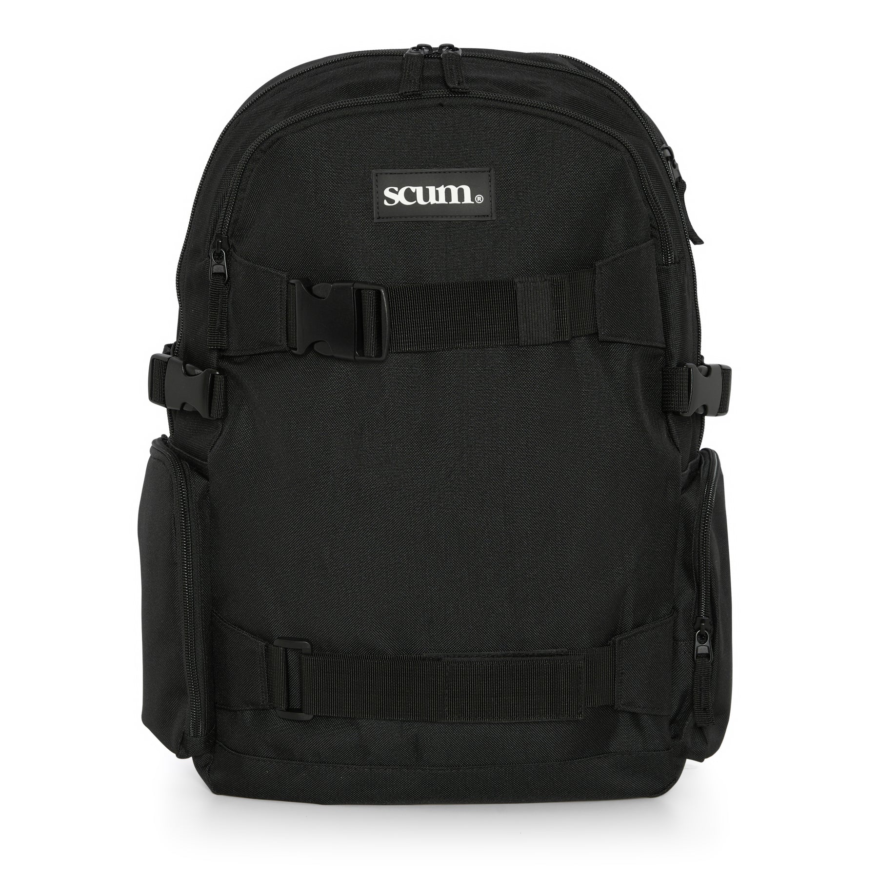 Laptop compatible up to 18". External access padded laptop compartment. Skateboard carry straps. Internal organiser section. Zippered front pocket. Zippered side pockets. Padded back panel. Compression straps. Padded adjustable shoulder straps. Grab handle.